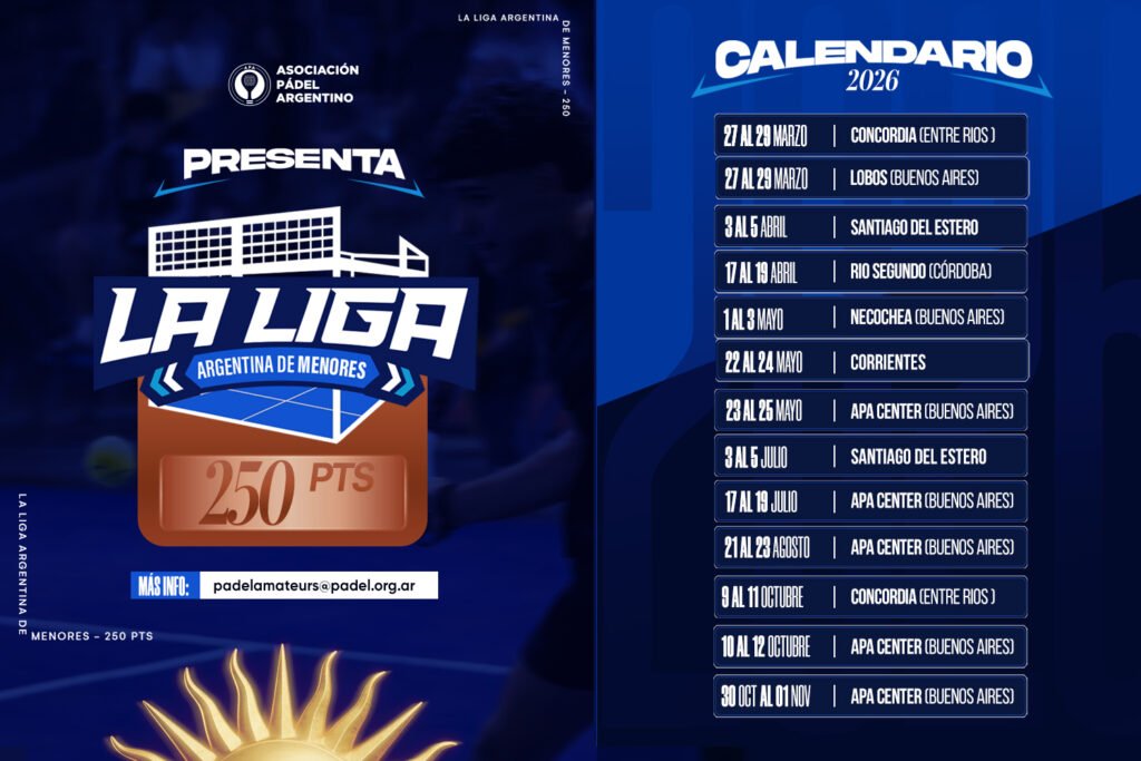 Estos torneos forman parte del Calendario Oficial 2026, diseñado para que los chicos puedan competir más seguido y seguir creciendo dentro del circuito.